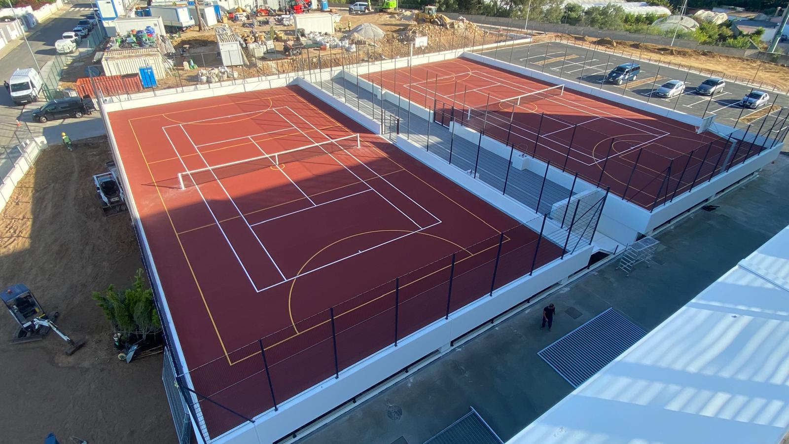 Теннисные корты, универсальные спортивные зоны, беговые дорожки, роллердромы, padel и другие специализированные пространства.
